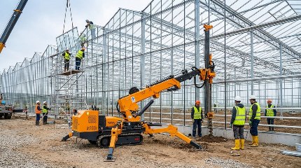 Решение проблем монтажа каркаса и остекления пришло с развитием рынка специализированной компактной подъемной техники. Мини-краны (краны-пауки) стали оптимальным инструментом для строительства промышленных теплиц. Их главное преимущество — способность работать в стесненных условиях с высочайшей точностью и бережным обращением с грузом.
