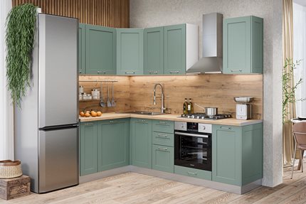 - Угловая (Г?образная) – задействует две смежные стены; даёт больше рабочей поверхности и хранения при умеренной площади. При монтаже важны точные углы, корректная стыковка столешниц, выбор и установка углового решения (карусель/«волшебный уголок»/глухой модуль).